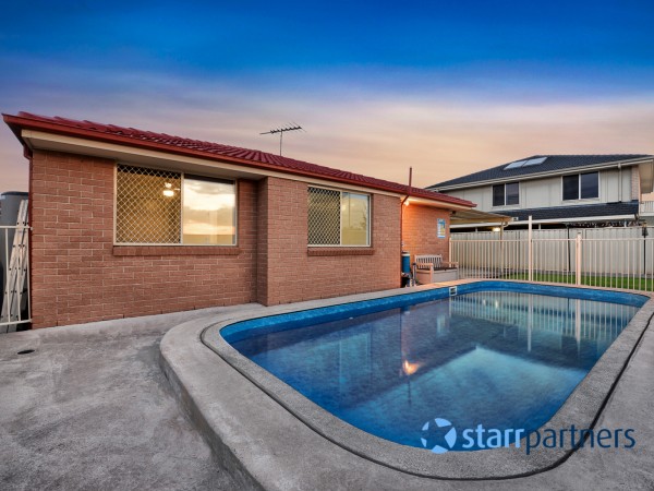 Outdoors makes for perfect entertaining with undercover pergola, private level backyard with refreshing inground pool. Completing the package is a 1 1/2 car garage with drive through access & easy care gardens. Awesome location with peaceful cul-de-sac, access to park, close to railway station, shops, schools & M5 motorway