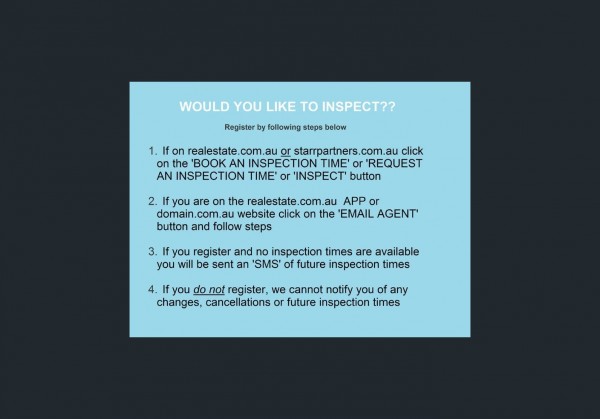 If you are interested in the property, submit your application. If you are on realestate.com.au (website or app) or starrpartners.com.au, click on ‘REQUEST A TIME, ‘REQUEST INSPECTION’ or ‘INSPECT’ button to receive a link. If you are on Domain.com.au click on the ‘EMAIL AGENT’ button and follow the steps to receive an application.