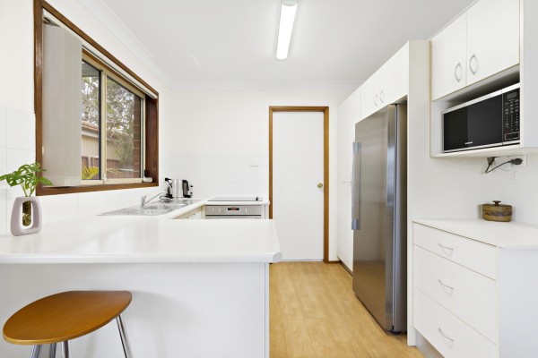 - Well-maintained kitchen with induction cooktop, breakfast bar