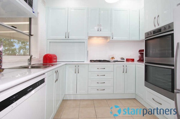 * Modern gas kitchen with stainless steel appliances and dishwasher