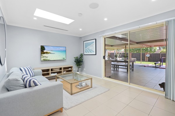 - Family room off kitchen with glass sliding doors to undercover entertainment area