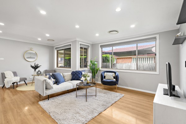 Nestled in the serene heart of Glenmore Park on a 493.7m2 block, this enchanting family abode welcomes you home with open arms. Positioned in a cul-de-sac, this home offers 3 bedrooms with built-in robes, the main bedroom features plantation shutters for added elegance, ducted air conditioning and double roller blinds ensuring privacy throughout the home.