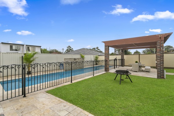 Enjoying a premium blue-chip Hilltop position on an enormous manicured and securely gated 663.8 sqm block, one of Merrylands finest homes is ready for new owners to enjoy the exceptional lifestyle that is on offer. Here is a home that has been carefully crafted to guarantee the best in comfort and lifestyle while ensuring it stands the test of time with a full-brick construction at its foundation. Internal light-filled living spaces include a sun-filled family room with a warm in-wall dual sided gas fireplace, a separated rumpus room plus an upstairs formal lounge room. Surrounded by extensively landscaped gardens, outdoor entertaining is a breeze in the all-weather courtyard over beautiful Travertine flooring, cooled by a ceiling fan with additional gas heating outlets, all of which can be semi-enclosed with smart automated blinds. Here you can relax with friends and family as you enjoy the beautiful private lawn and in-ground swimming pool which is serviced by an additional covered gazebo.