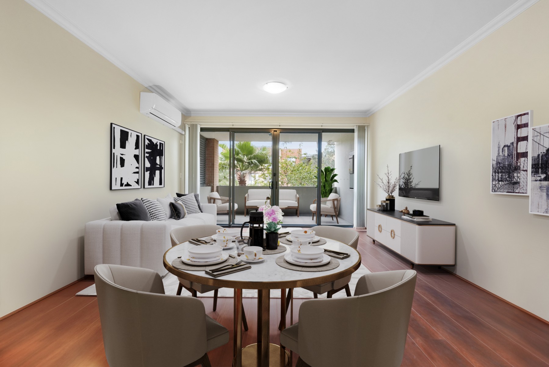 * Large, air-conditioned living area with generous balcony