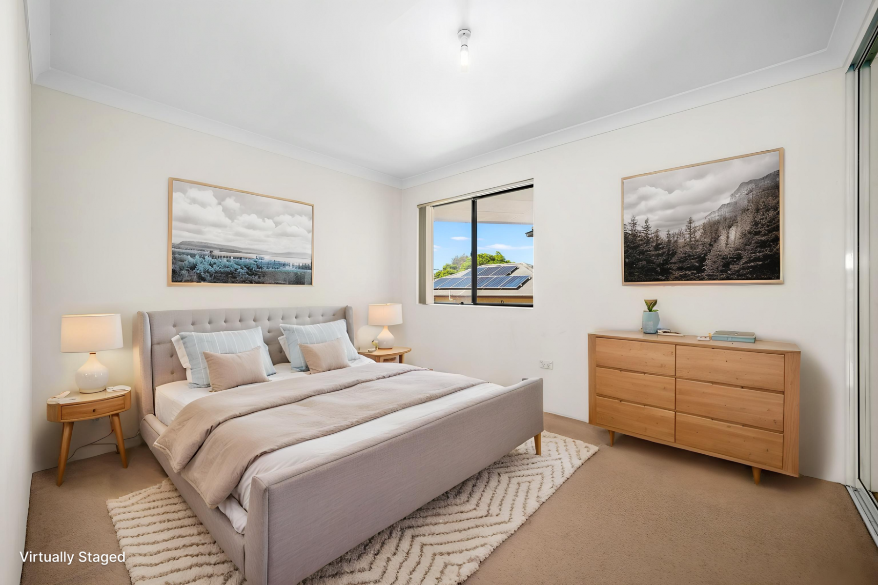 This spacious 106sqm light filled top floor apartment offers 2 bedrooms with builtins, main with a private balcony, neat open plan kitchen with gas cooking, great size combined living and dining with plenty of natural light, and all opening onto a sunny balcony with north facing views.