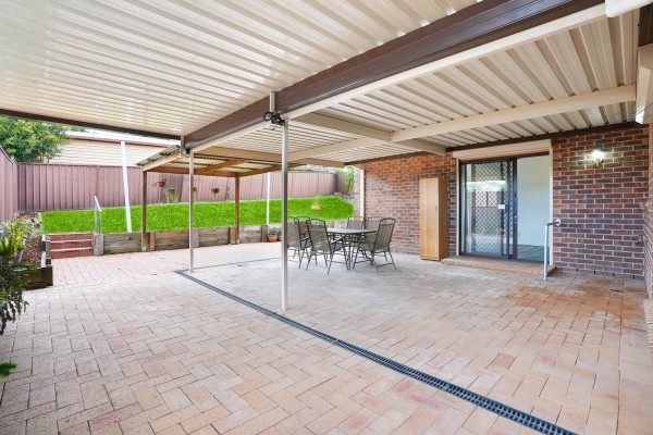THE OUTDOORS: Huge paved entertaining area overlooking the spacious grassed yard- perfect for the kids to play!