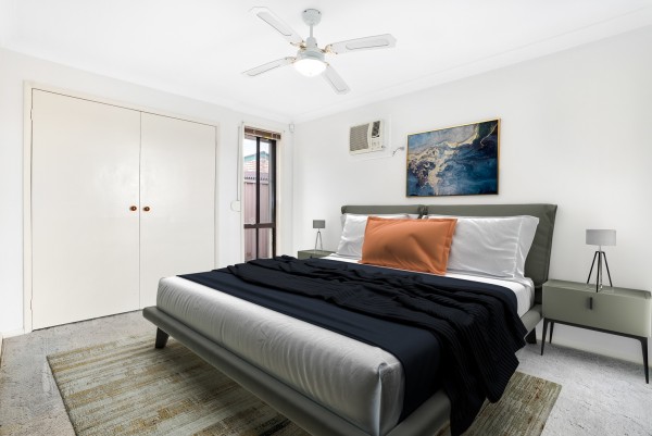 THE BEDROOMS: 3 good size bedrooms with built- in wardrobes to all and ceiling fans to 2. The main bedroom offers ensuite access to the main bathroom, plus an air conditioner.