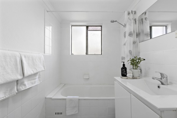 * Neat and tidy bathroom with shower over bath