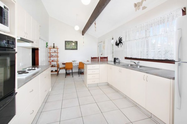 *Modern large tiled kitchen with meals area