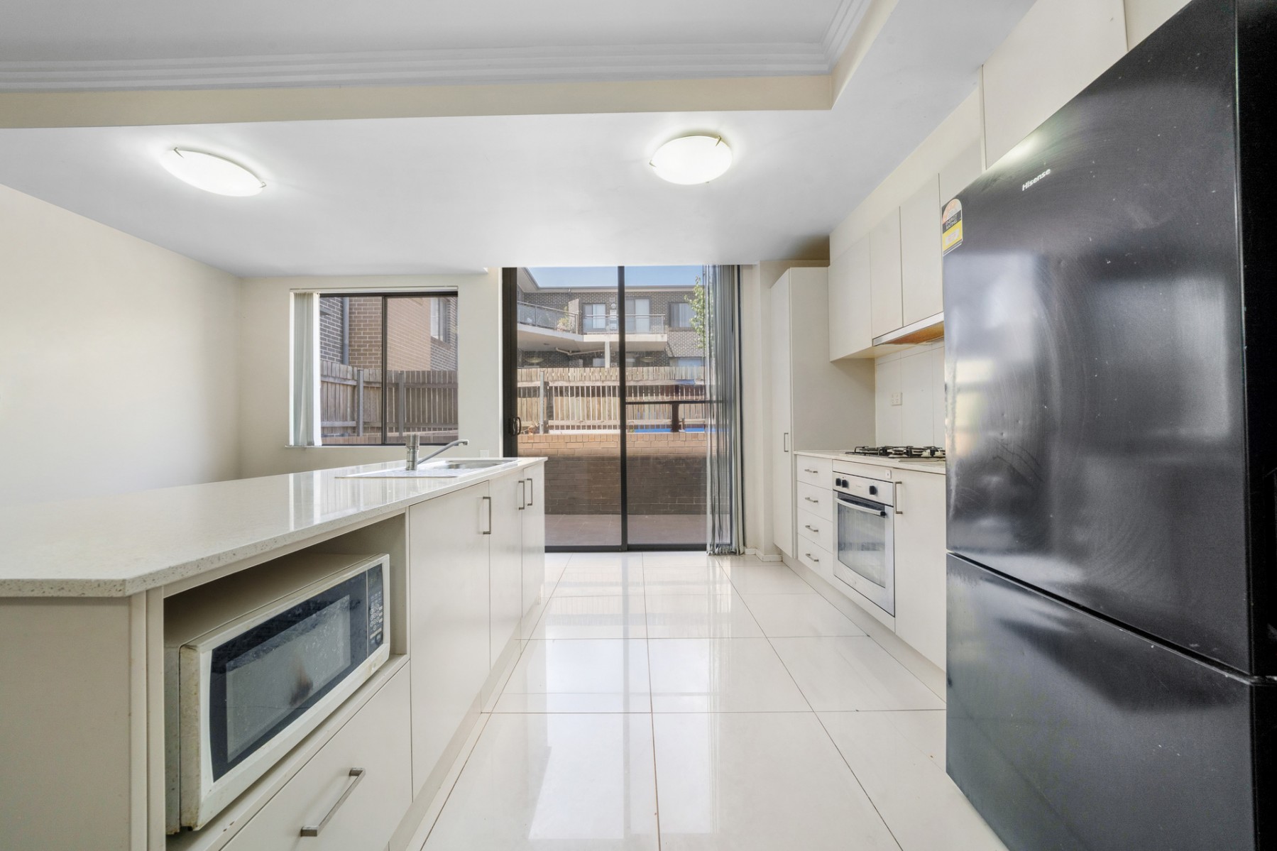 - Modern kitchen features stone benchtops, gas cooking, dishwasher & ample storage.