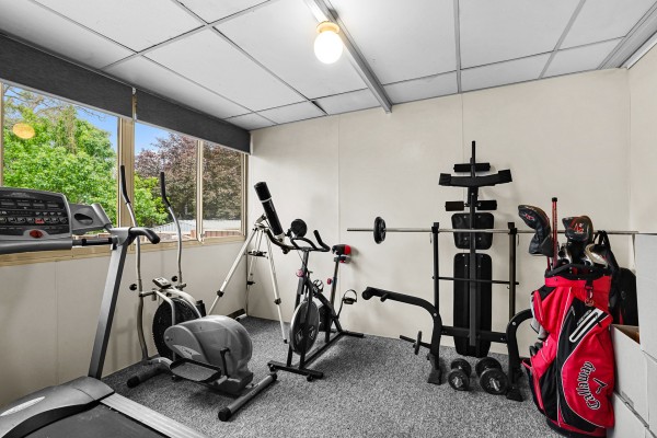 - Undercover carport that fits two cars with drive through tandem garage converted into a man cave/storage unit