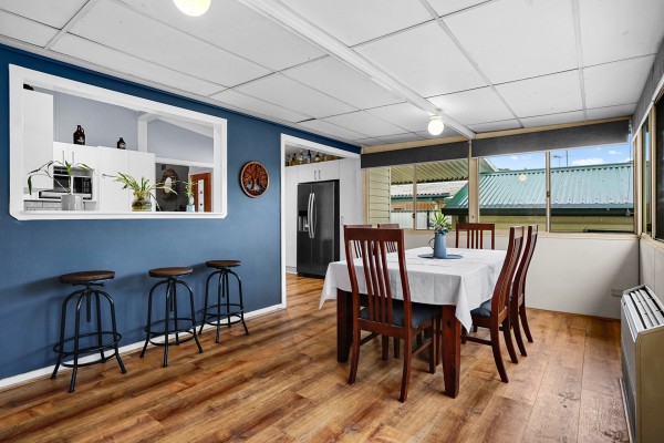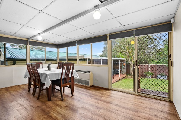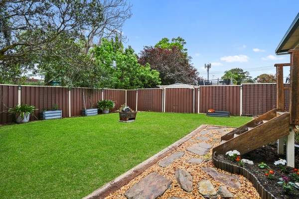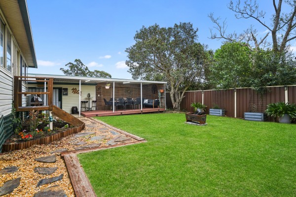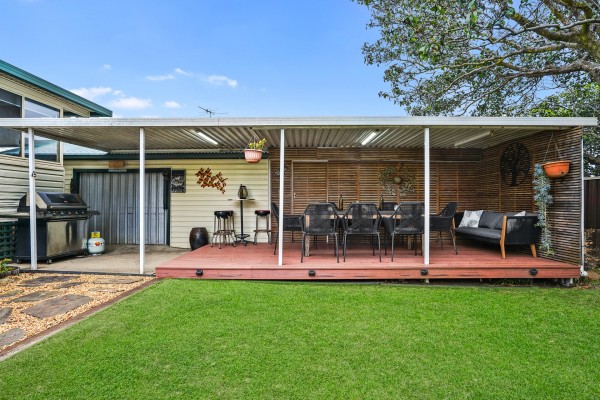 - Undercover modwood timber decking overlooking beautifully landscaped grassed yard with side gate access