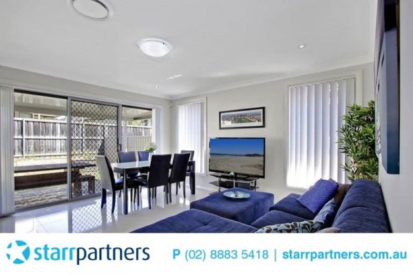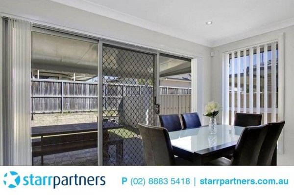 Starr Partners Bella Vista Presents - This contemporary delightful home situated on one of the best and quiet streets of Parklea. Only 3 years old, North facing with ample amount of natural light. This wonderfully presented home is just footsteps from T-way bus stops, local shops (Stanhope Village) and schools. With 4 great size bedrooms (all with built-ins), ducted air, immaculate sunken formal lounge, a gourmet kitchen with top of the range appliances and Caesarstone bench-tops. Five good size A delicate theatre room with all cable connections available. Entertainment complete with timber decking and low maintenance. All this set in a very quiet and friendly neighbourhood.