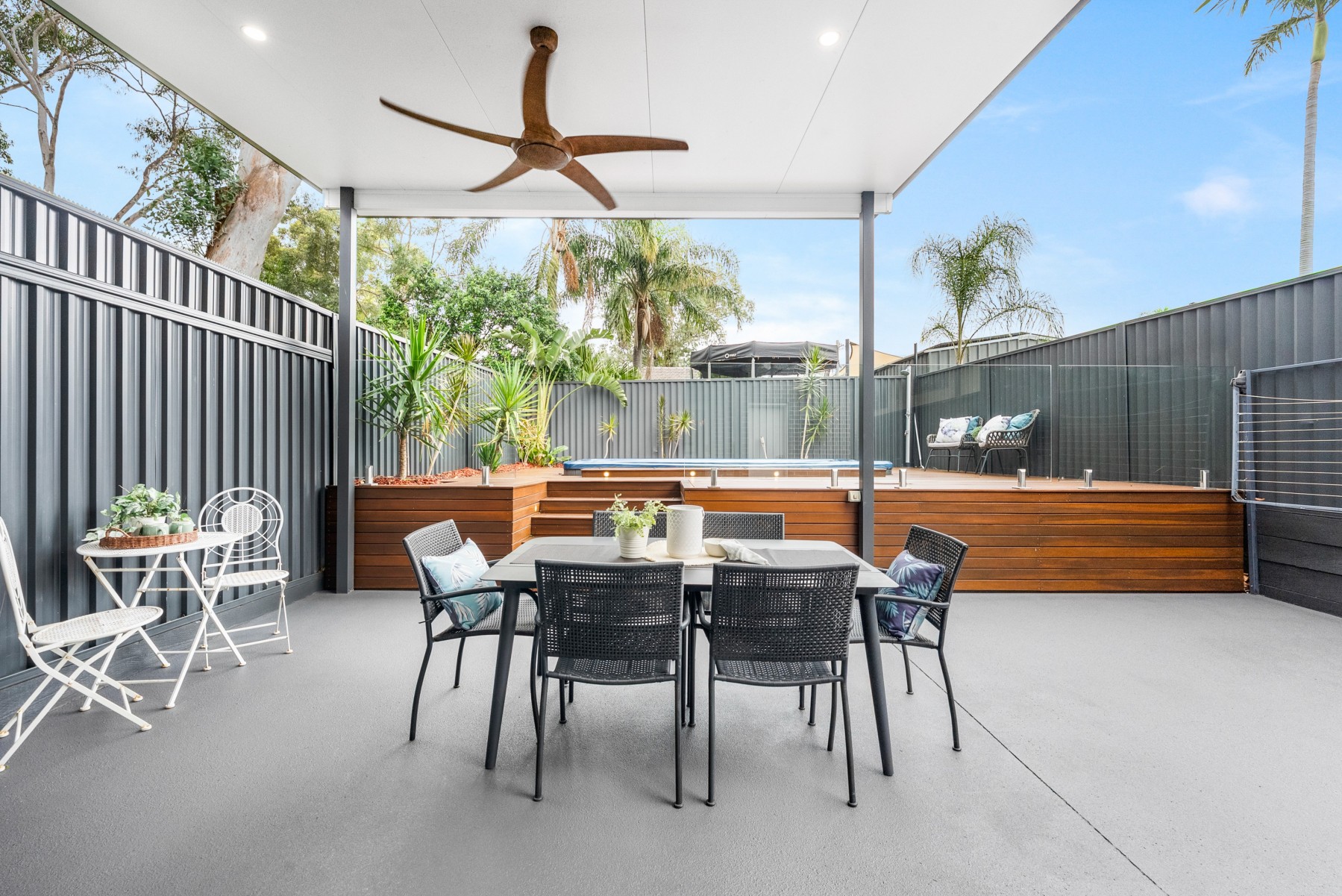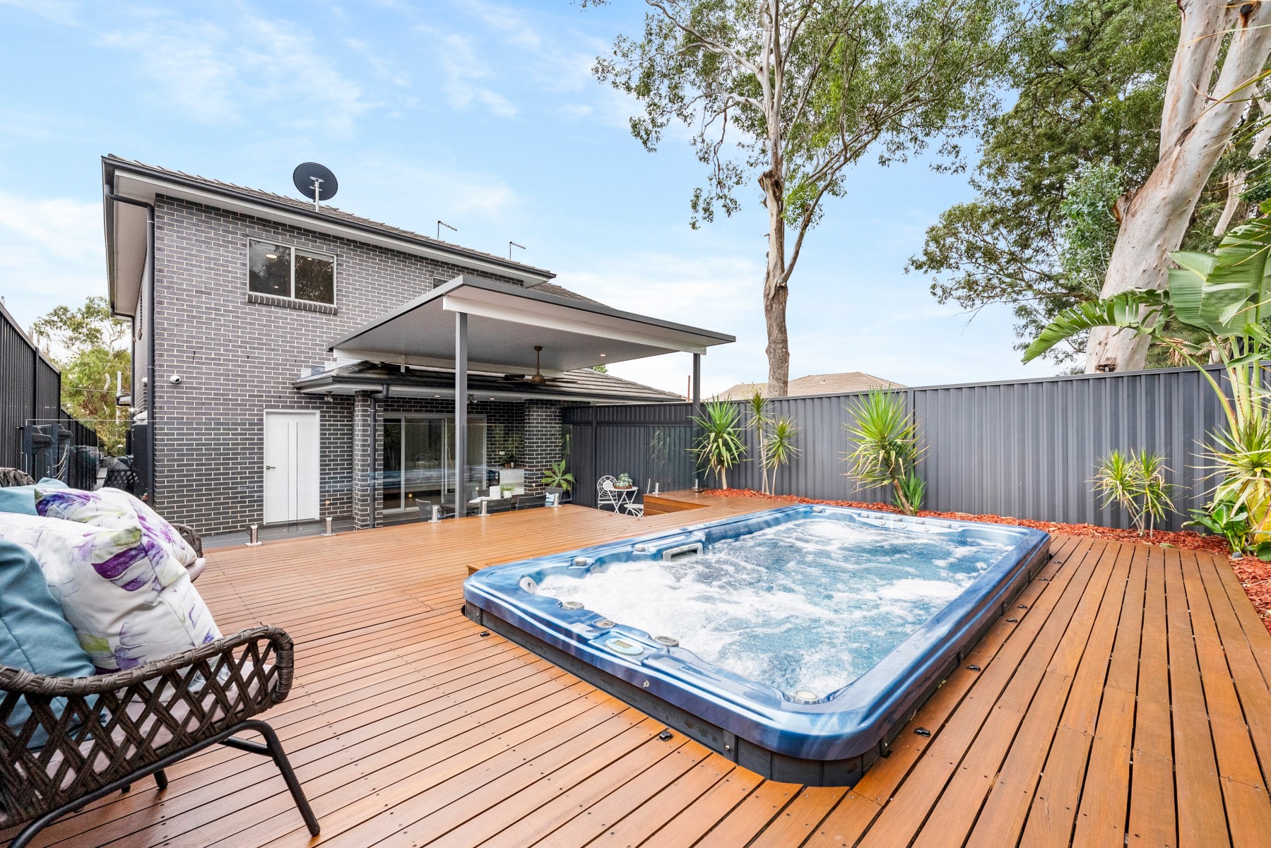 * Neat outdoor entertaining area with an in-ground swim spa