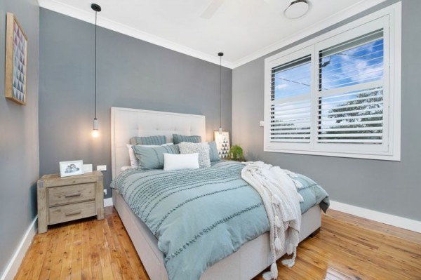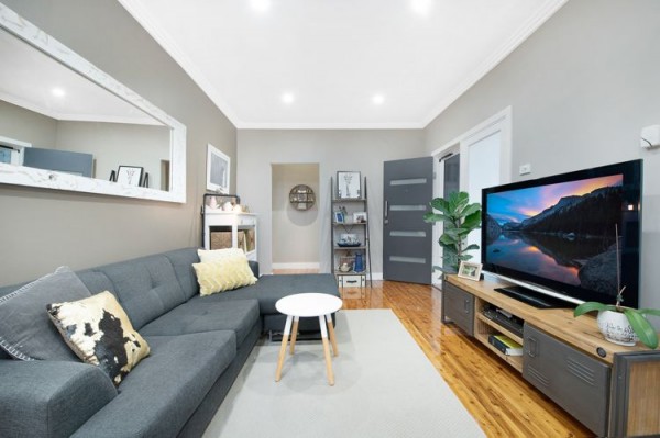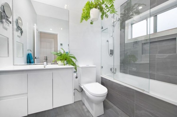 * Ultra modern bathroom with heated towel rail and shower over bath