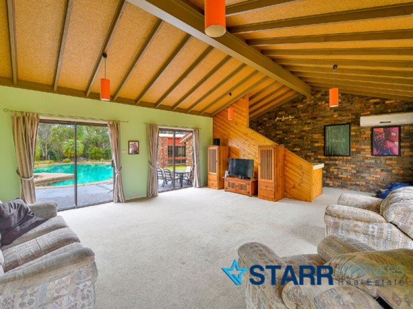 + Set on a level 2.31 Hectares (approximately 6 acres). This original architecturally designed home with its exposed raked ceilings & internal brick features is guaranteed to impress.