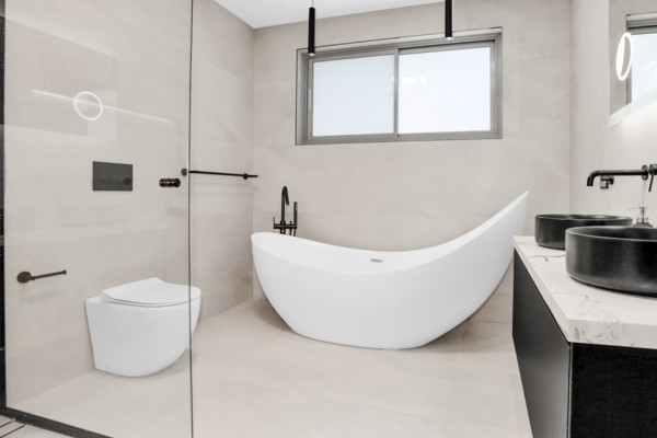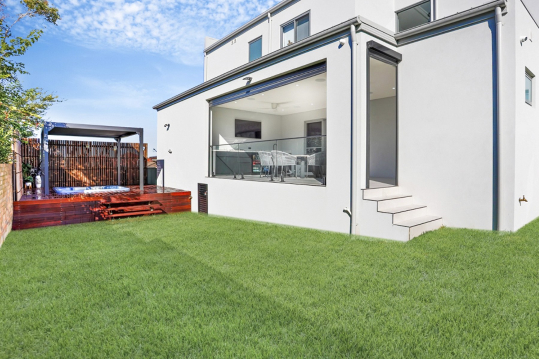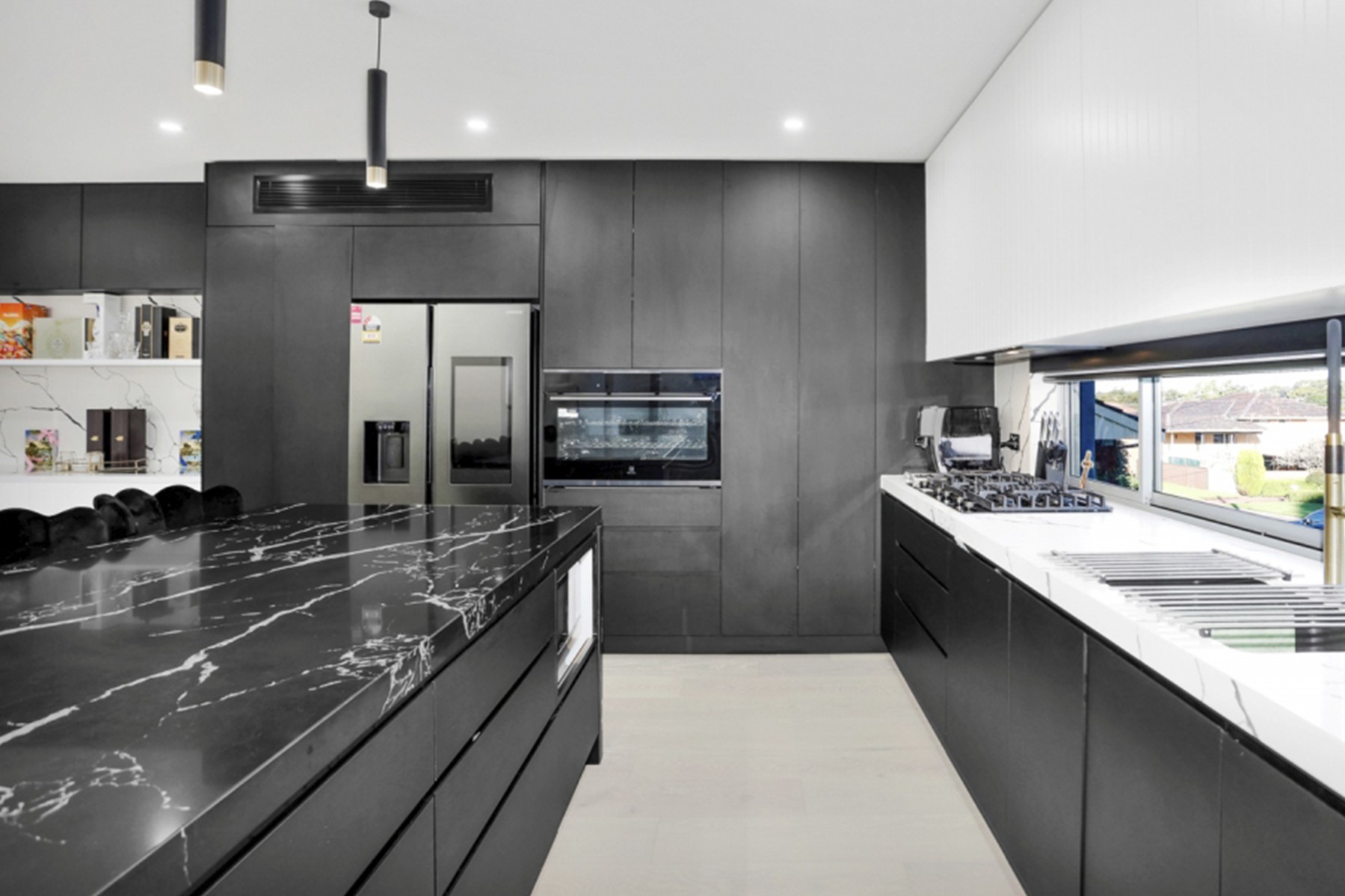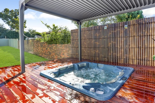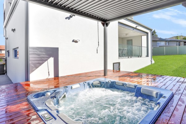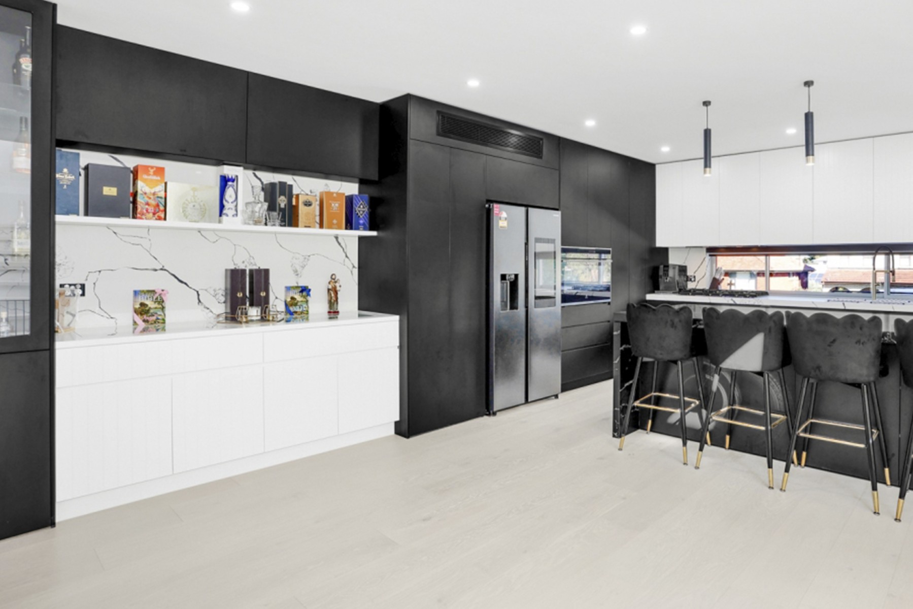 The flexible floorplan presents a bathroom and bedroom, or home office space downstairs, plus an additional upstairs lounge, primary bathroom with striking bathtub and dual sinks, and three bedrooms all with built-in robes including an enormous master suite with walk-in robe, funky couples ensuite with dual sink and shower, plus a balcony with incredible district views all the way to the Sydney CBD. The spacious family room features tailor-made cabinetry including a custom bar and warm wood-fired heater adjoining the enormous open-plan kitchen with large breakfast bar/dining table, wide 900mm appliances and polyurethane cupboards. The living space extends outdoors to an elevated north-facing alfresco area with its own marble bench topped gas kitchen, as well as ceiling fans and electric cafe blinds allowing you to manage the sunshine to suit your needs. This supreme entertaining space overlooks a manicured lawn and sunken Jacuzzi with timber deck and gazebo for ultimate spa relaxation in any weather. With plenty of storage space, a lock-up garage with phone controlled remote access, electronically controlled gates to additional secured driveway parking, nothing has been missed. Less than 200 metres to bus transport, you're only 500 metres to Merrylands Park, 600 metres to the T-Way bus for fast access to both Liverpool and Parramatta, and just over 700 metres to shopping. This is a must see for premium home buyers.