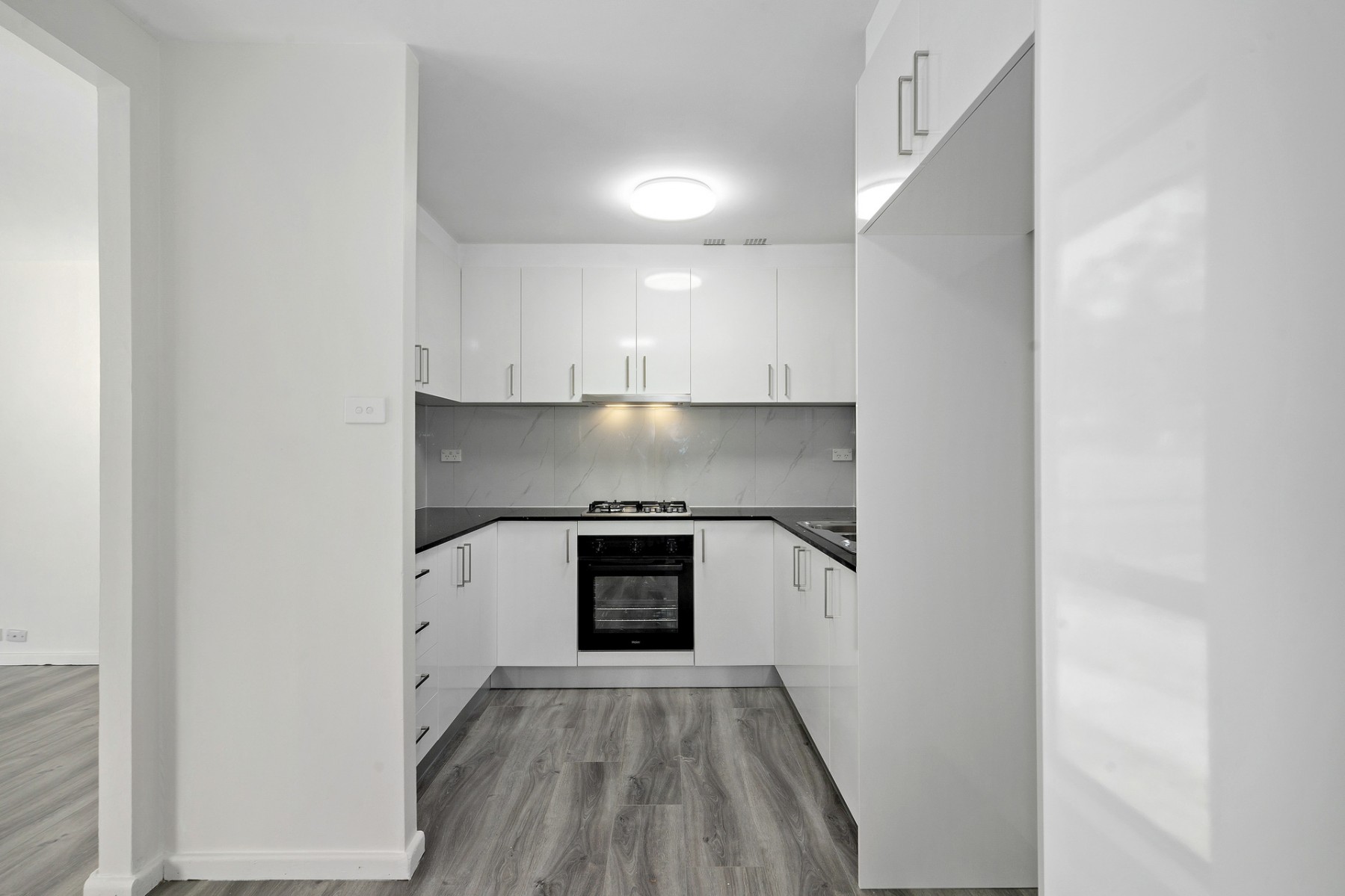* Dining room off near new modern kitchen with stone benchtops, plenty of cupboard space and gas cooking