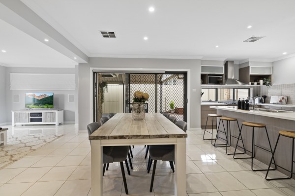 The open plan kitchen includes a walk in pantry and 900mm gas cooking. The dining and living rooms both lead out onto a large covered patio and deck, perfect for entertaining all year round.