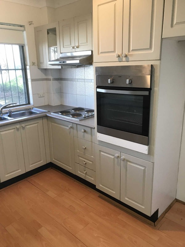 - Modern kitchen with electric appliances and brand new oven.