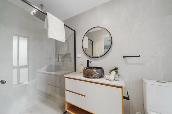 ~ Modern bathrooms complete with stone top vanities and upgraded tap fixtures