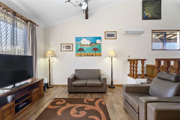 We have the absolute pleasure in offering to the market this unique and one of a kind family home. You will immediately appreciate the home upon arrival with its landscaped yards, corner position and whisper quiet location. Featuring an abundance of natural light, raked ceilings, air conditioning, multiple living spaces with sunken living room, east facing balcony and plenty of storage.