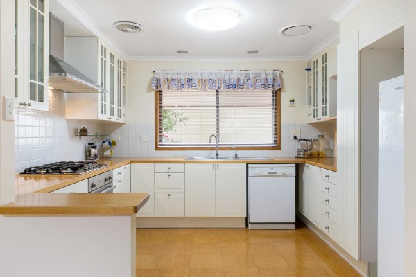 Extremely well presented & updated kitchen with stainless steel appliances, gas cooktop, tile splashback, dishwasher, timber feature bench top and servery window into the formal dining area