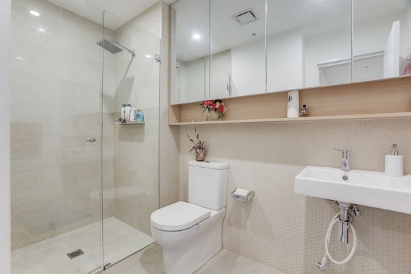 The unit boasts a high-security building, secured shared recreational area, and top-quality features such as built-ins throughout, timber flooring, stone bench tops, split system AC, tiled to ceiling bathrooms, and a large balcony. Plus, with a single car space and storage cage included, this property ticks all the boxes for both style and practicality.