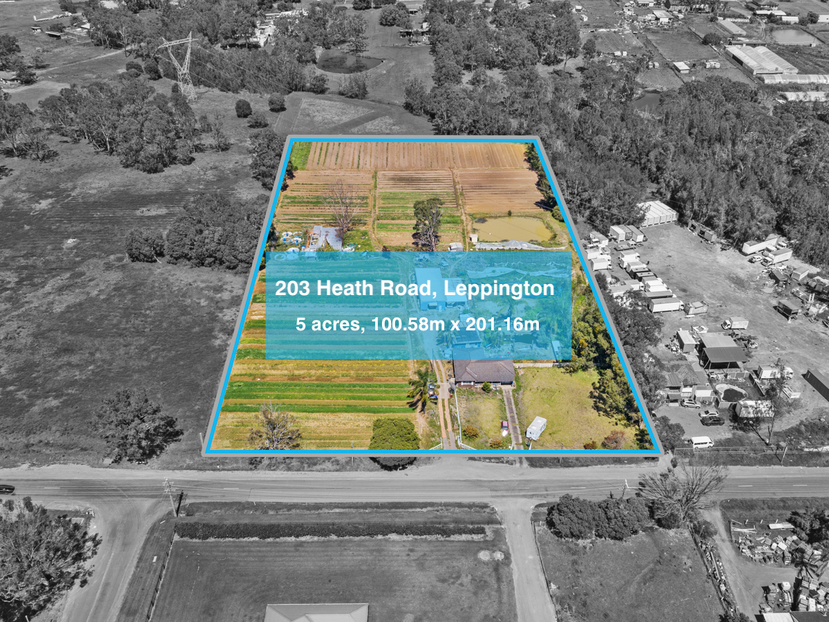 Nestled in the thriving Leppington Precinct, this expansive 5-acre property is close to the residential developments of Emerald Hills and Willowdale.