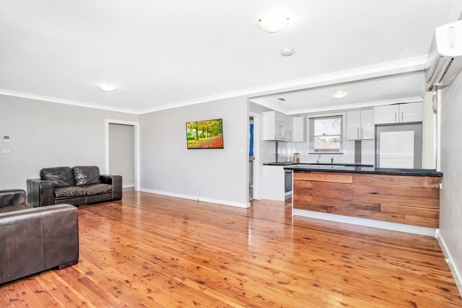 Versatile open plan living and dining with split system AC
