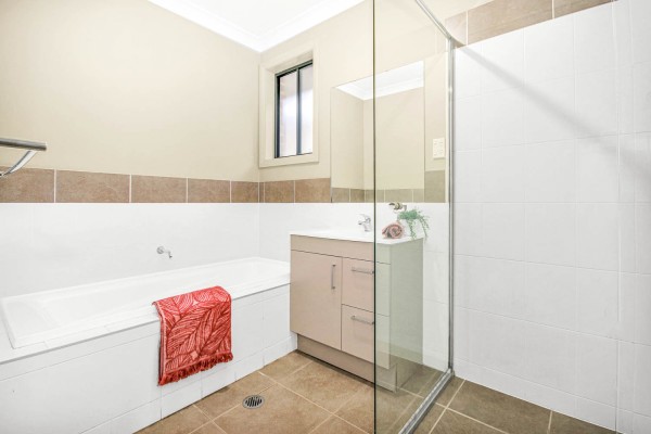 Neat & tidy main bathroom with a separate bath and shower, plus a separate toilet