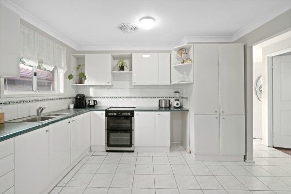 THE KITCHEN: Well presented kitchen offering an electric cooktop and plenty of bench and cupboard space.