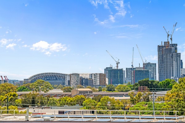 * North facing balcony with Olympic Park views