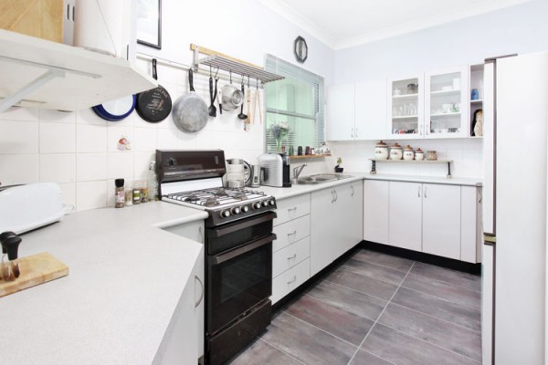 - Neat kitchen with gas cooking