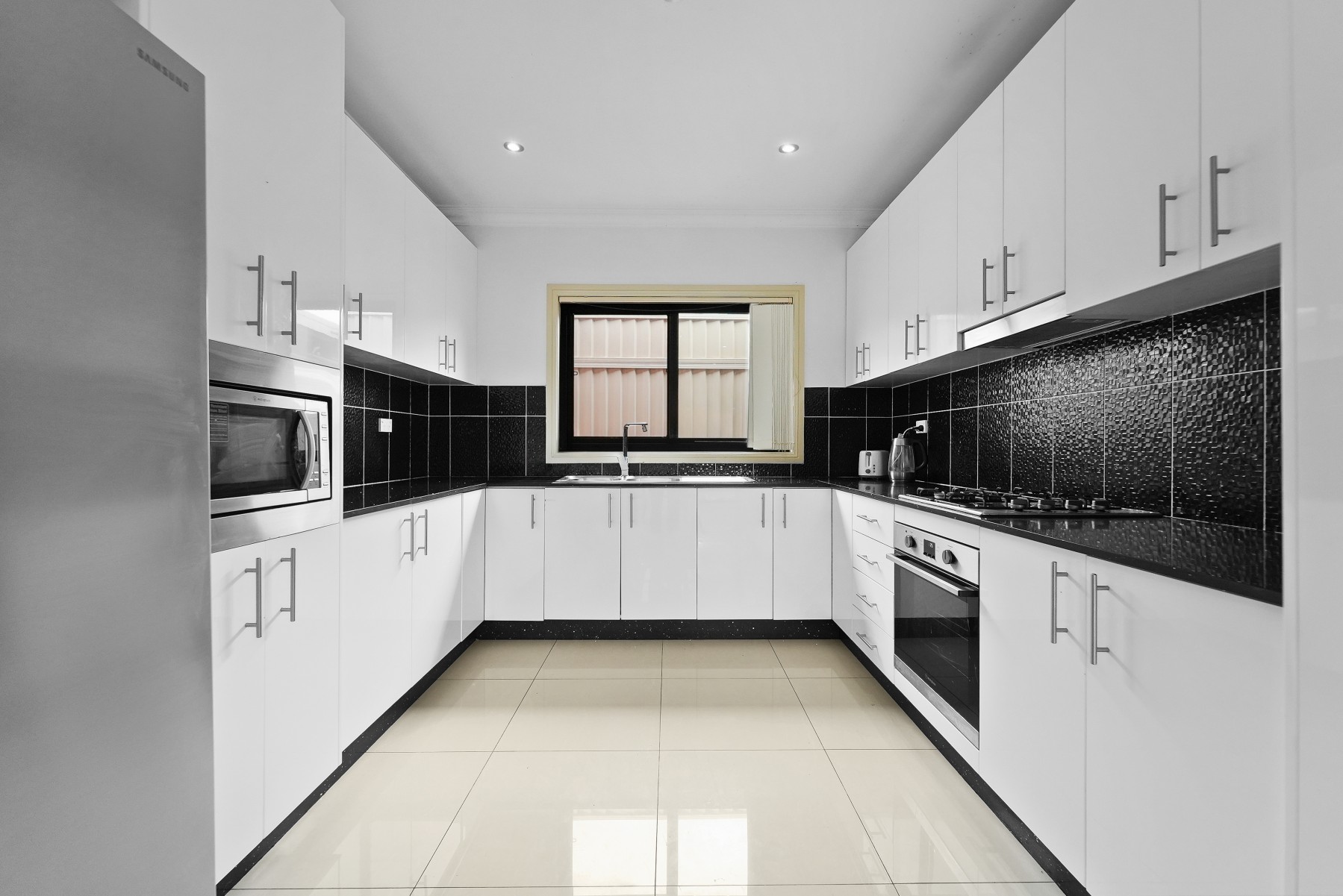 * Contemporary gas kitchen with stone bench tops