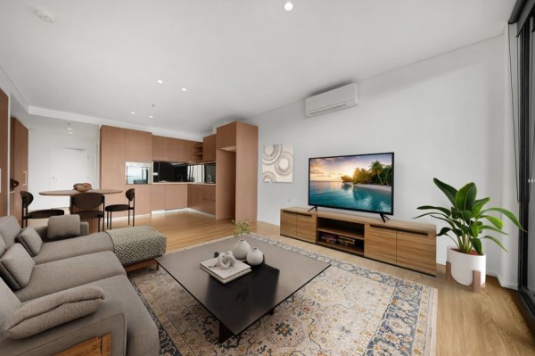 Nestled alongside the serene riverfront, this stunning high-end apartment offers a perfect blend of luxury and comfort. The spacious open plan lounge and dining area bathes in natural light and seamlessly extends onto the expansive balcony, boasting picturesque views of the tranquil river.
