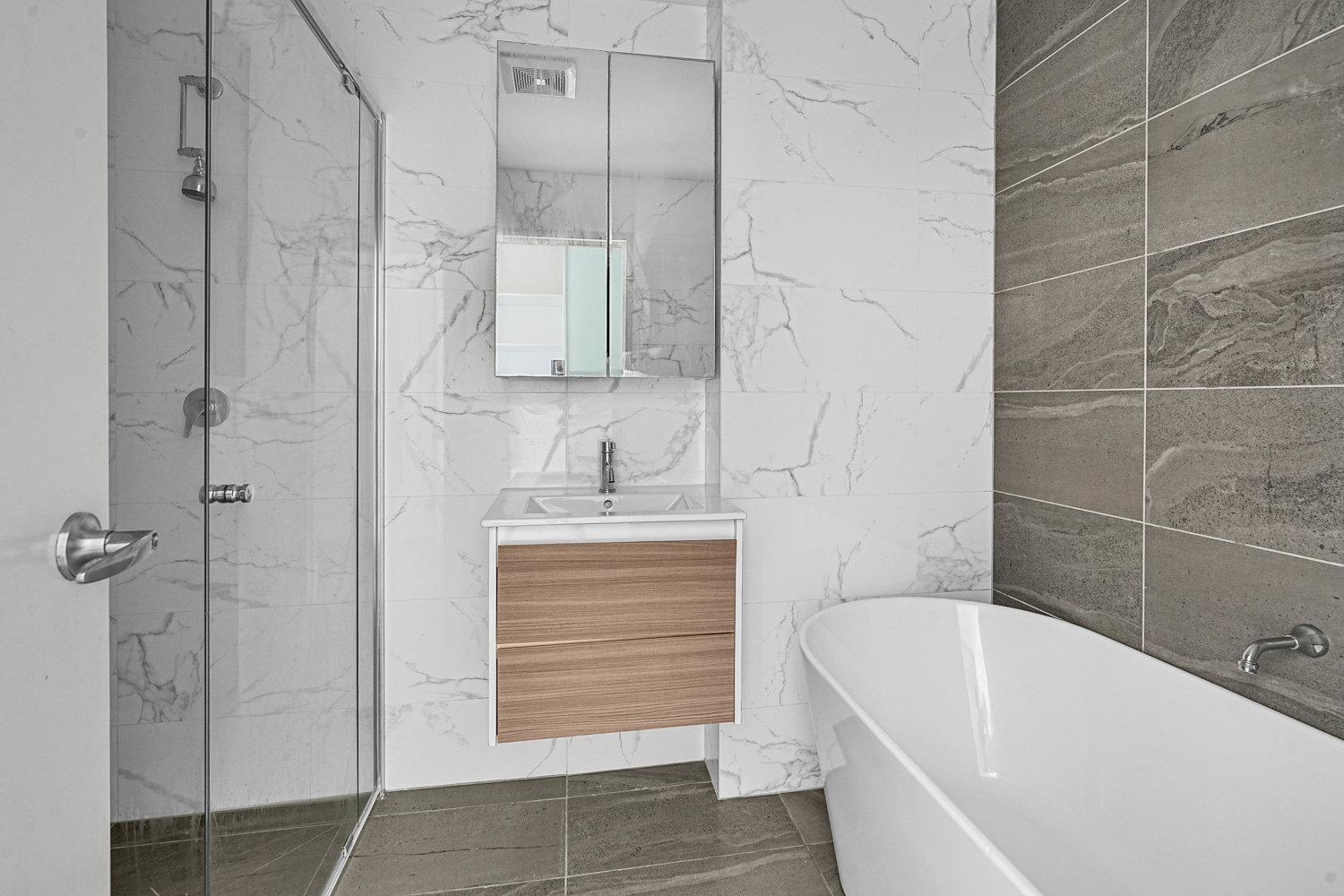 ~ Floating vanities and floor to ceiling tiles in both bathrooms