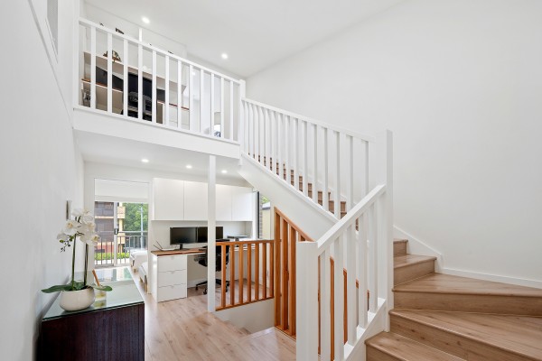The loft style design and staircase allows maximum natural light to flow through the property. On Level 1, there are 2 bedrooms, both with builtins, main with ensuite, a main fully tiled bathroom, and fitted out home office space, and on Level 2, another home office space, plus games room or guest accommodation, with storage space and another bathroom.