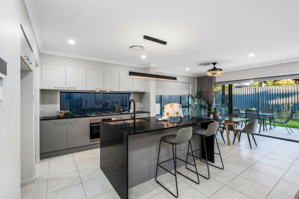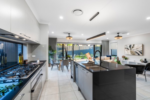 • Kitchen: Full-size walk-in pantry, a massive kitchen island, 900mm Westinghouse oven, cooktop, and rangehood, Westinghouse dishwasher, matte black pull-out kitchen mixer, and a glass splashback