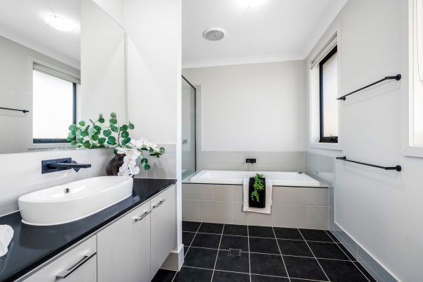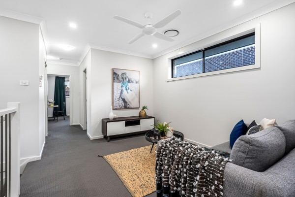 • Superior finishes: floating cabinetry with stone benchtops in all bathrooms, matte black tapware, and LED downlights throughout