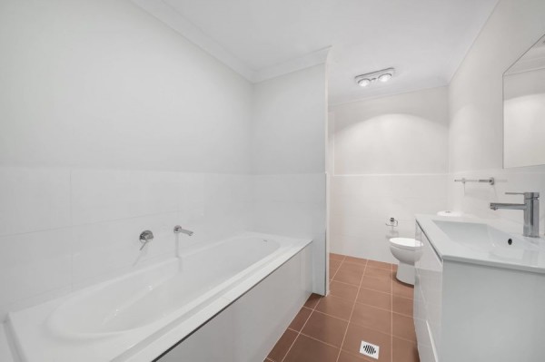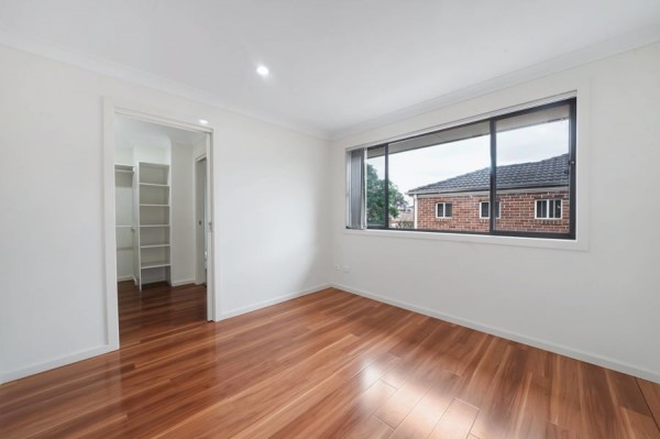 The bedrooms are generously sized and offer ample storage with a oversized walk-in robe in the master bedroom and a walk-in robe to second bedroom. Downlights illuminate the living spaces, creating a warm and inviting ambiance.