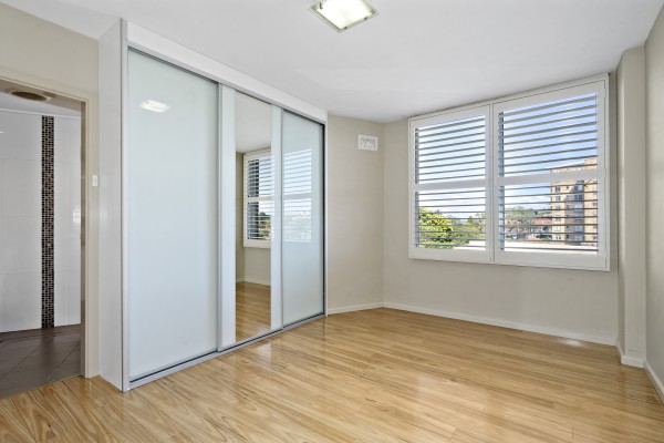 * Spacious bedroom with mirrored built-in wardrobes
