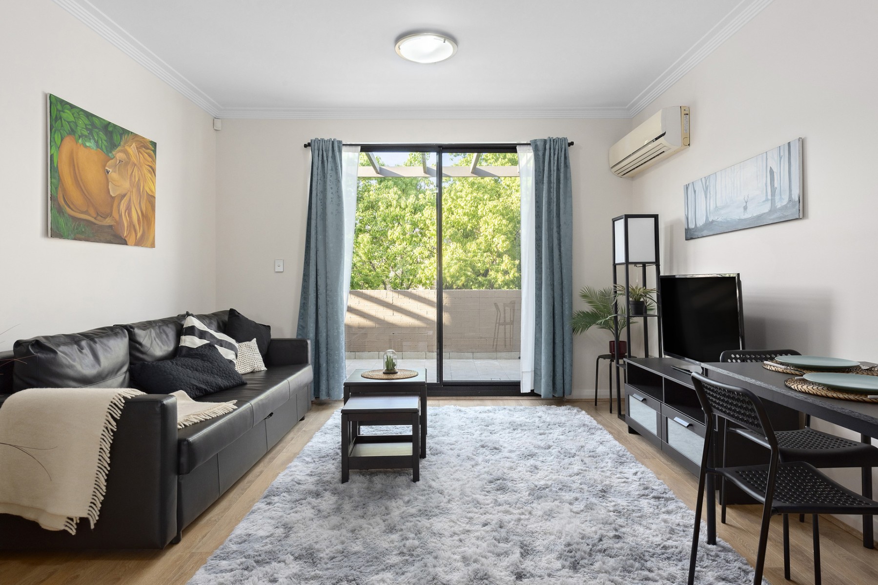 - Generous open plan lounge & dining area with split system air-conditioner