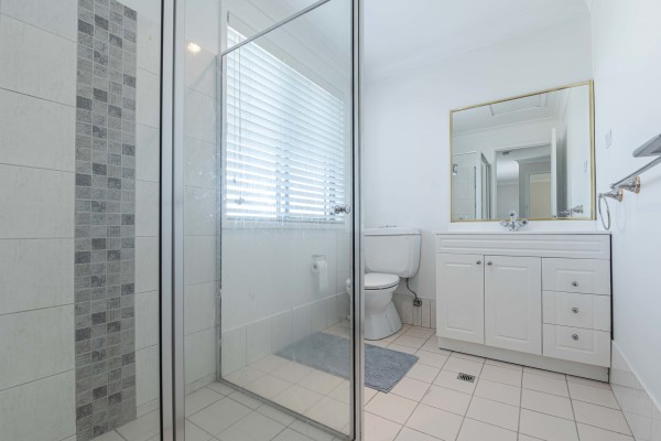 - Main bedroom with split system air-conditioner, bathroom with two access points and mirrored built-in wardrobe