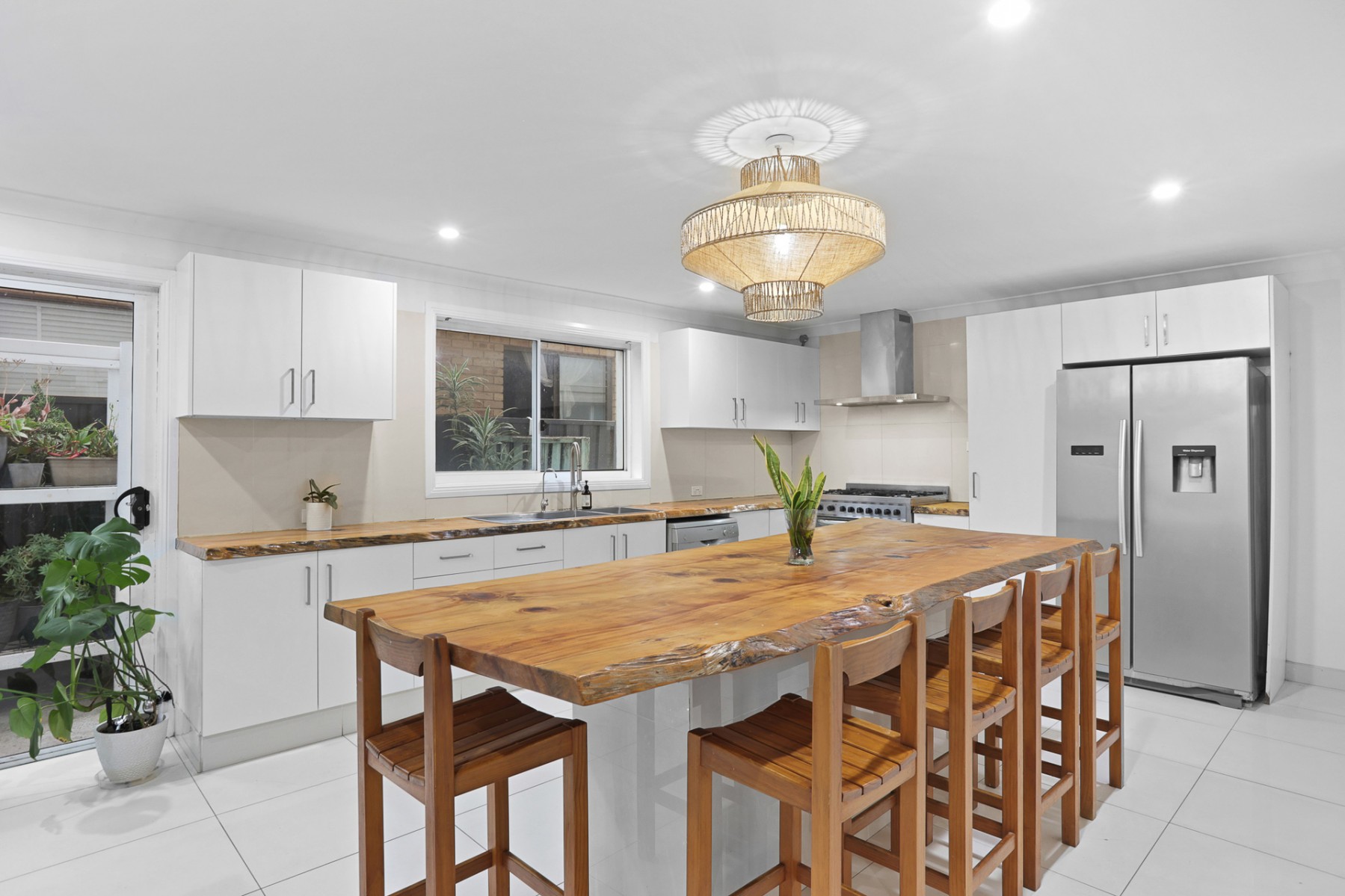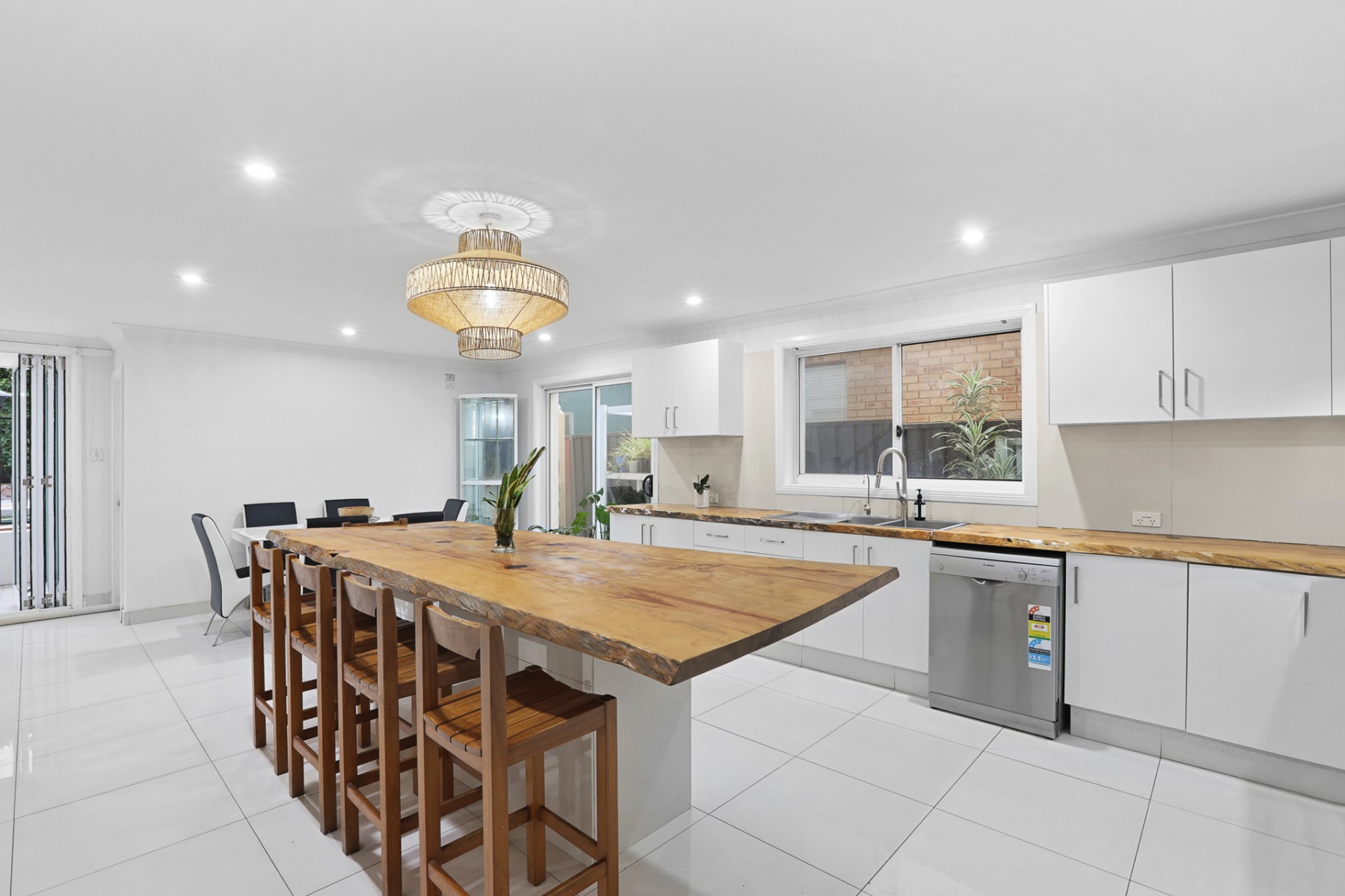 - Modern kitchen equipped with 5 burner gas cook top, double sink, large breakfast bar plus dishwasher