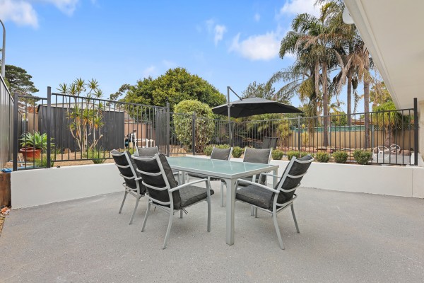 - Outdoor entertainment area overlooking the beautiful in-ground pebblecrete pool