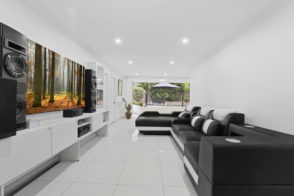 - Lounge room with bi-fold doors opening up to the entertaining area