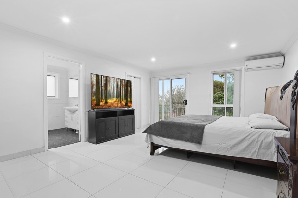 - Massive main bedroom offering walk in robe, ensuite with corner bathtub, split system air-conditioning and access to verandah