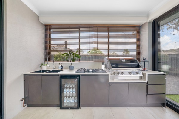 - Seamless indoor-outdoor living, with an alfresco area equipped with an outdoor kitchen, BBQ, bar fridge, and a cozy conversation pit