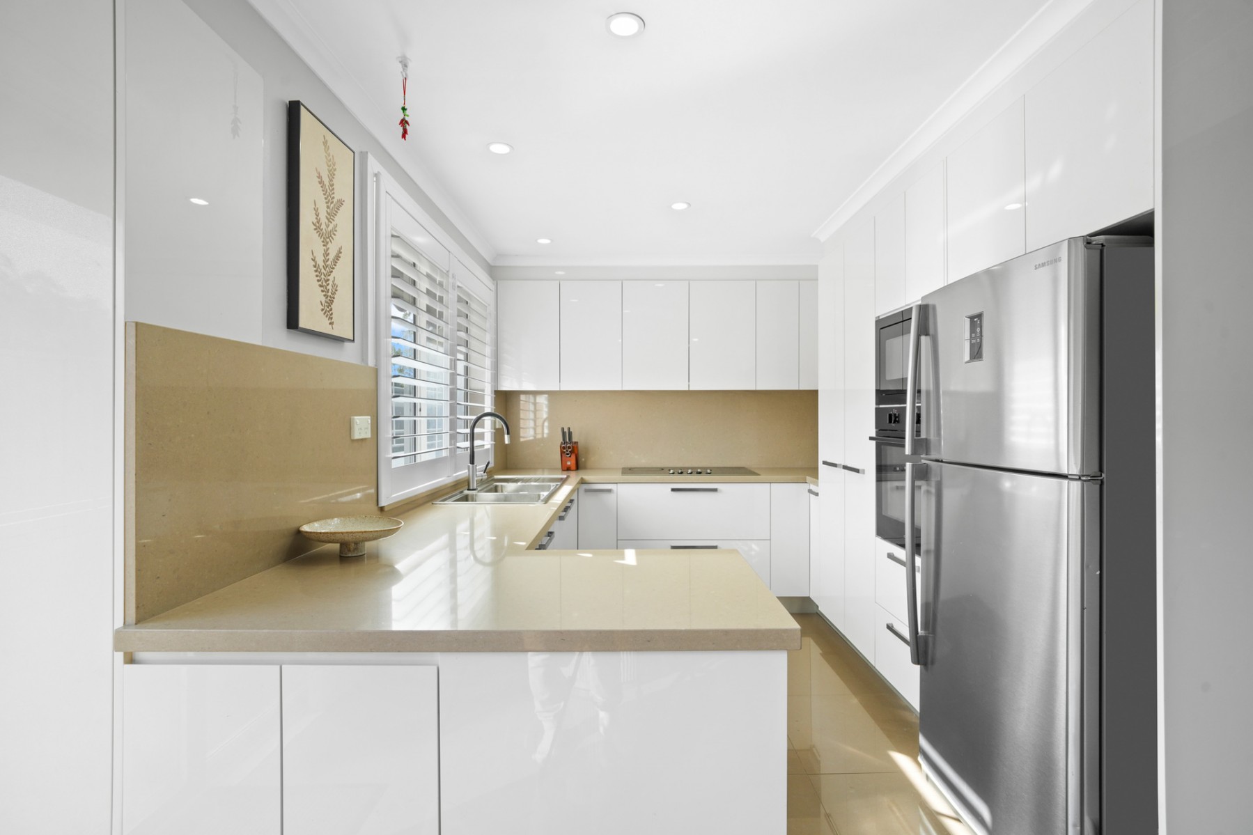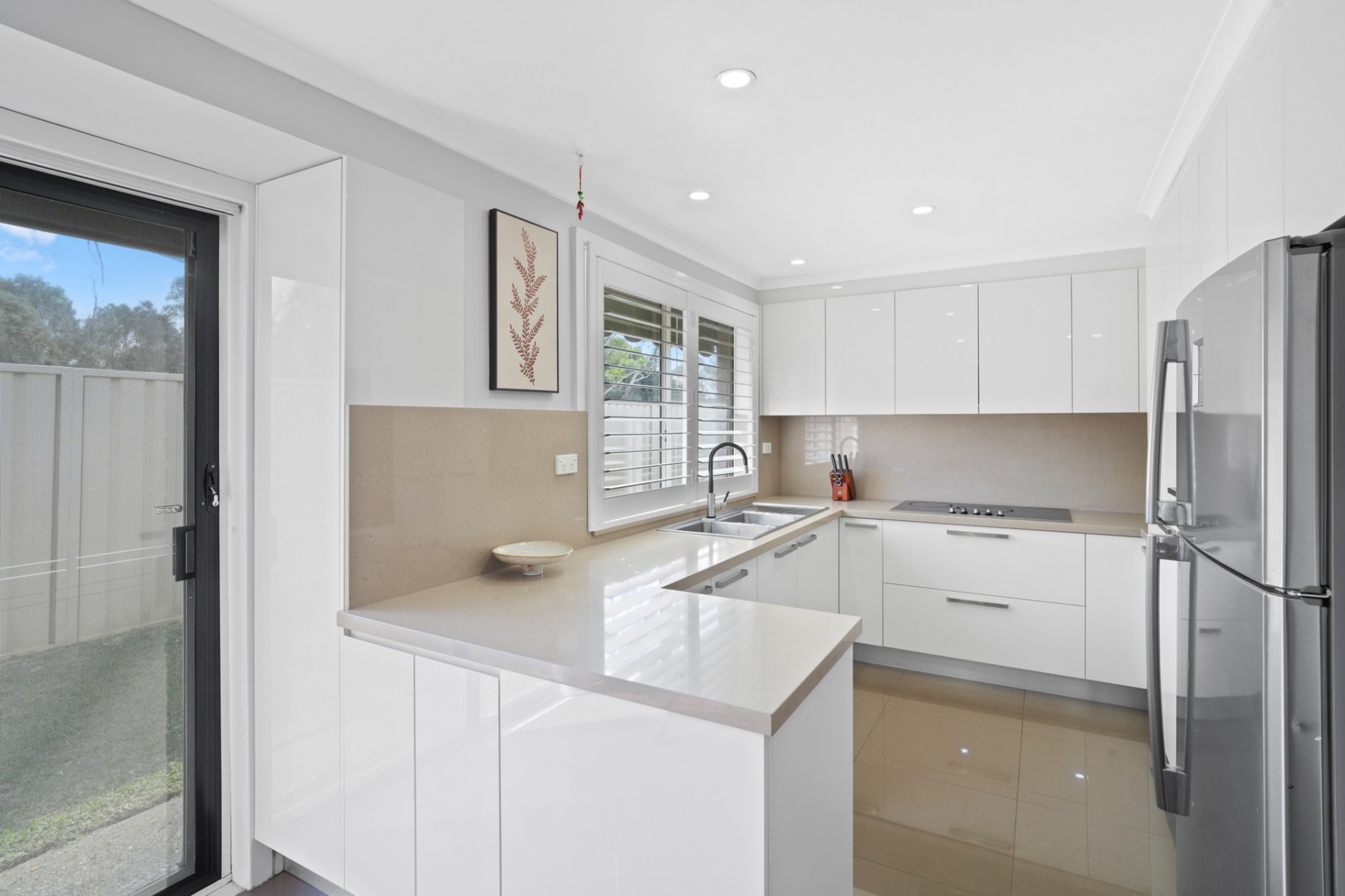 - High quality renovated kitchen featuring 40mm Caesarstone benchtops, a 5-burner Daniela induction cooktop, a double sink, a Chef electric oven, plenty of cupboard space